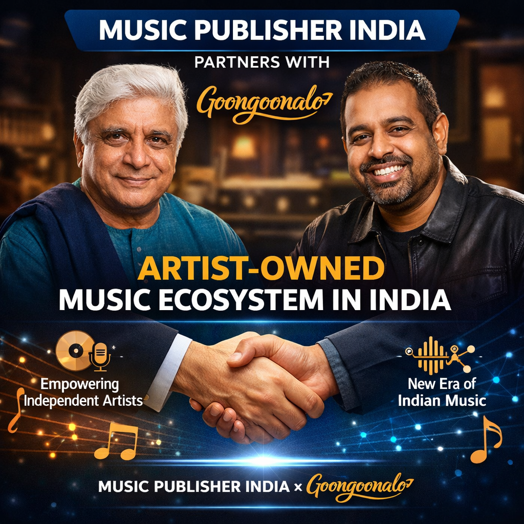 Mumbai, India — Music Publisher India, a leading artist services and music distribution company, proudly announces its strategic collaboration with Goongoonalo, India’s groundbreaking artist-owned music ecosystem founded by legendary lyricist Javed Akhtar, renowned composer-singer Shankar Mahadevan, and technologist Sridhar Ranganathan.